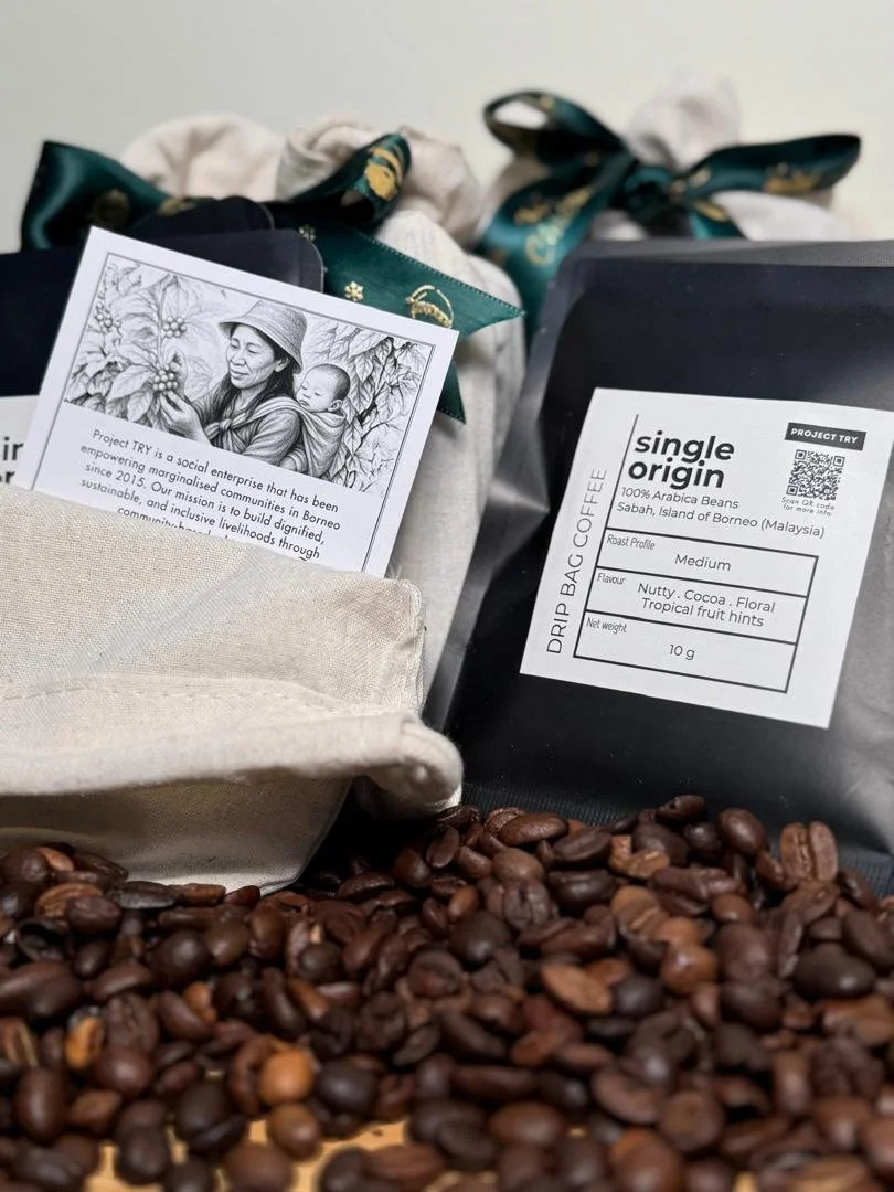 Each set features our freshly roasted beans or drip bags, wrapped with care and purpose.
